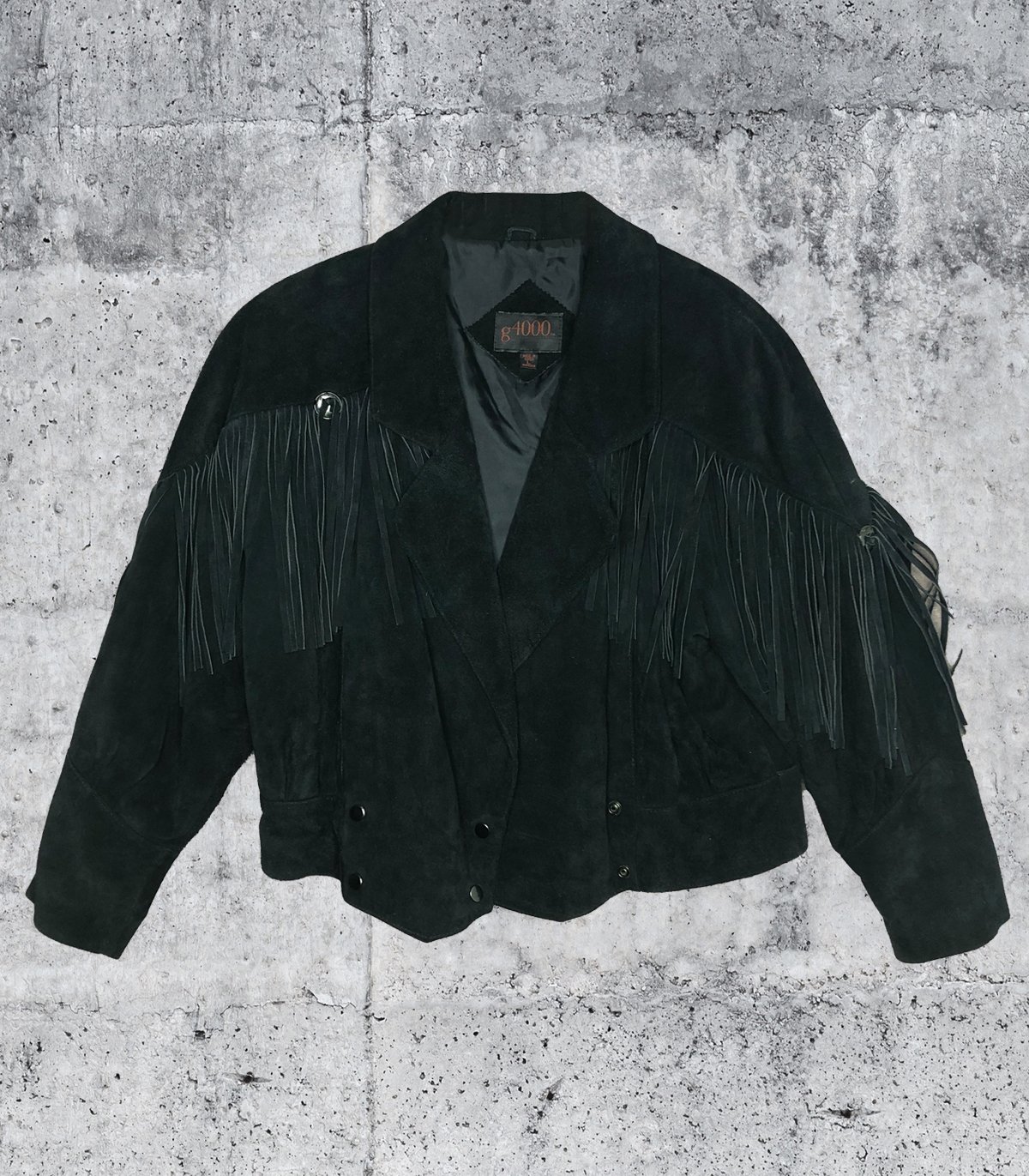 1990s G4000 Fringe Suede Leather Jacket Black Large