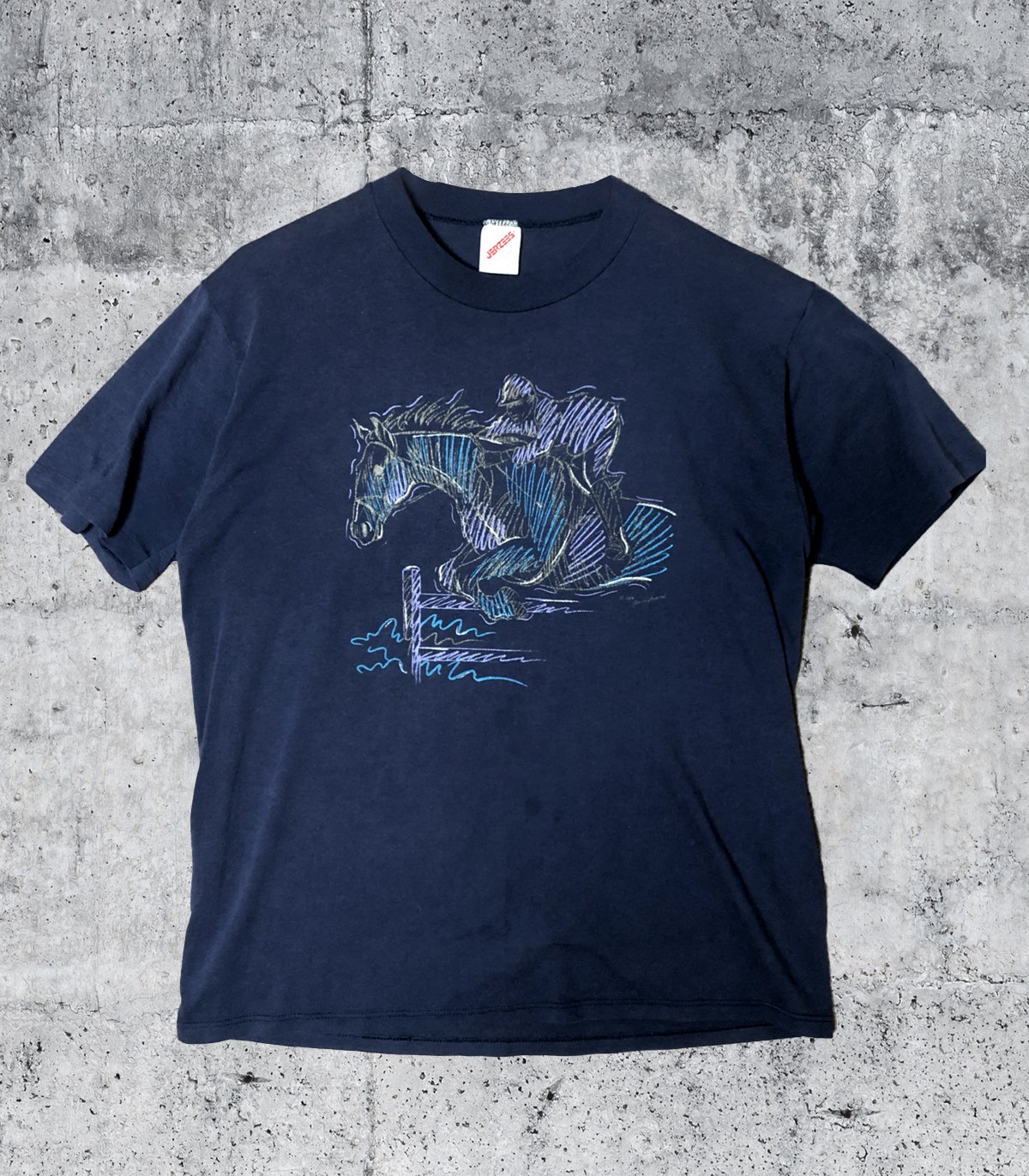Horse Rider Equestrian 90s Single Stitch Navy Jerzees T-shirt Large Made in USA
