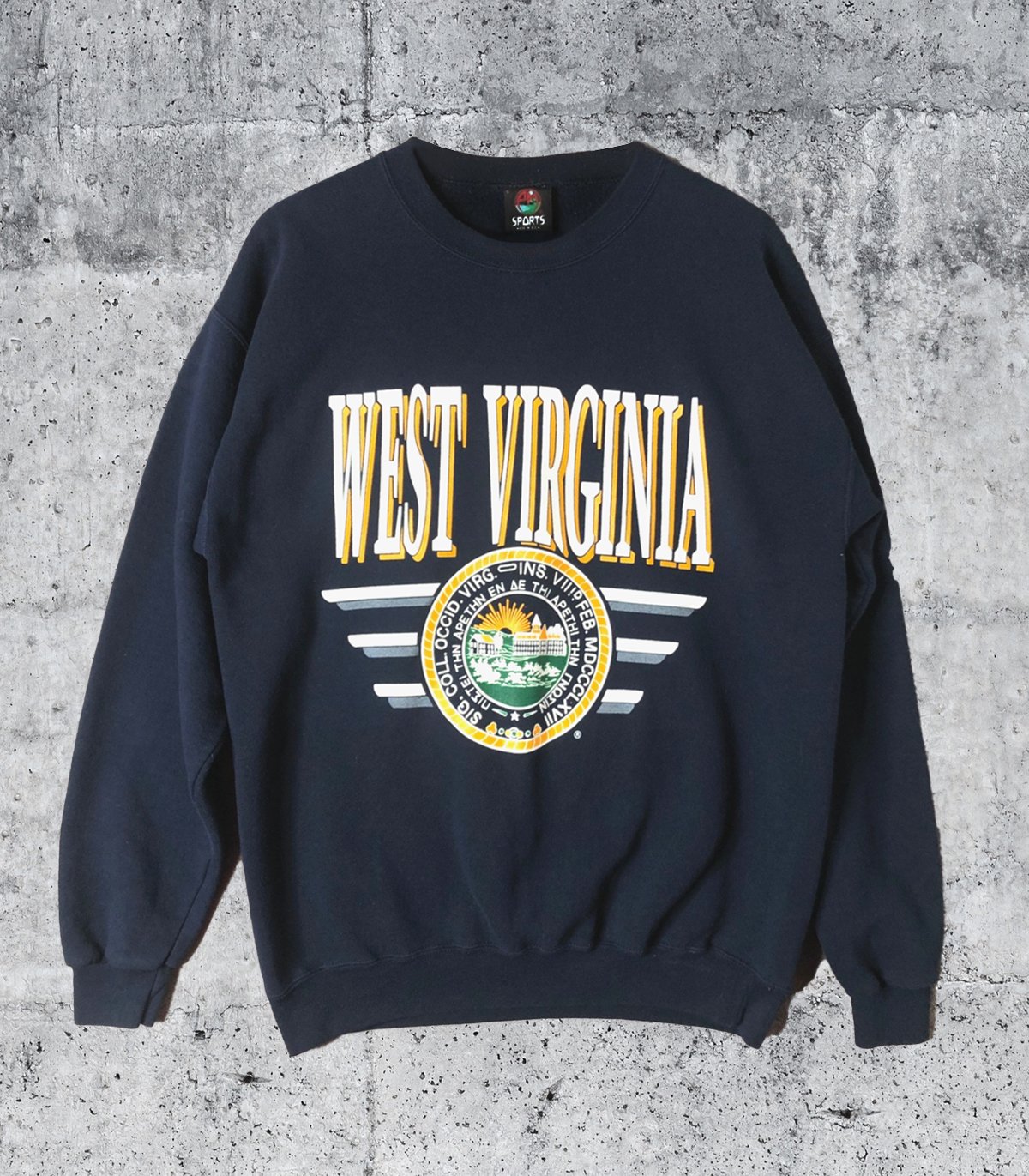 West Virginia University 90s Crew Sweatshirt Large Navy Made in USA